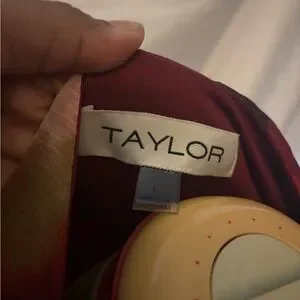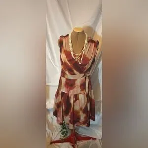 Taylor Burgundy Abstract Wrap Dress Sleeveless Knee Length