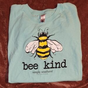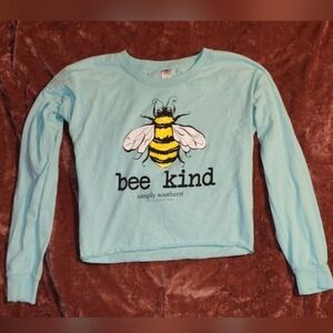 Simply Southern Bee Kind Long Sleeve Medium Blue Cropped Tshirt