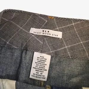 Y2k Rare Heart Moon Star Denim Mini Skirt with Plaid Waistband !