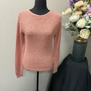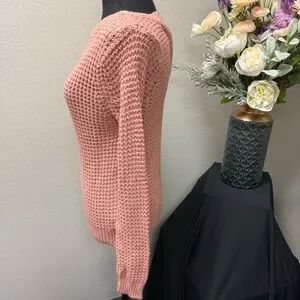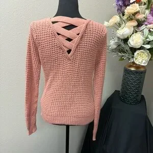 Papaya Pink Textured Knit Sweater M Long Sleeve Crisscross Back Fall Winter