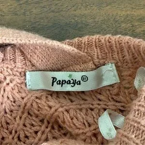 Cozy and feminine, this Papaya textured knit sweater features a soft blush-pink hue, long sleeves, and a stylish crisscross V-back design. Perfect for fall and winter layering, weekend outfits, and holiday gatherings. Lightweight acrylic knit with great stretch and flattering fit.