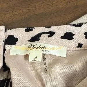 Andrée by Unit Blush Leopard Print Pleated Tunic Top Short Sleeve Large