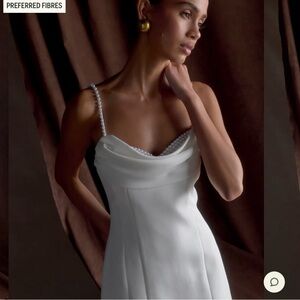 Dry cleaned and ready for your engagement, bachelorette, or wedding party! Only alterations done were to the cowl piece along the chest as it was originally too draped on me.