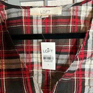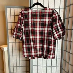 NWT LOFT Women's Plaid Puff Sleeve Top - Red and Black