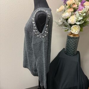 INC Gray Embellished Cutout Shoulder Sweater L Sparkle Detail Winter Chic