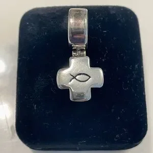 Silpada Sterling silver cross charm. Large bale. 1.25” long. Will work with chunky or thin chain. Features the Ichthys symbol. Perfect for bracelets or necklaces. Authentic. Retired. Pre-owned.