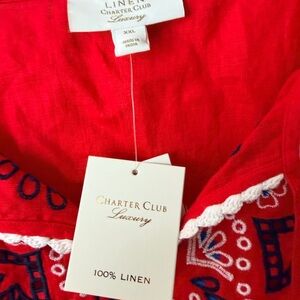 Charter Club Women's Linen Embroidered 3/4-Sleeve Top Sz XXL Red Coastal
