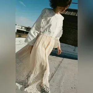 The SEA, New York Anita eyelet long sleeve top in cream features long bell sleeves and eyelet bib detailing.