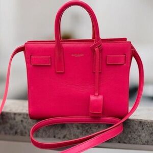 Saint Laurent YSL Hot Pink Leather Nano Sac De Jour