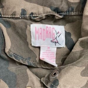 Keywords: MadRag jacket, camo zip jacket, faux-leather sleeve jacket, women’s size M jacket, camouflage outerwear women, street style jacket, urban fashion jacket, mixed material jacket, casual fashion layer, size M women’s jacket