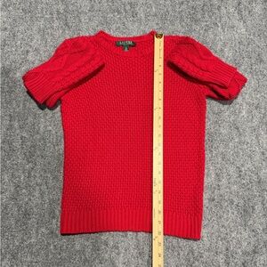 LAUREN Ralph Lauren Petite Small Red Crewneck Mixed-Stitch Sweater PS