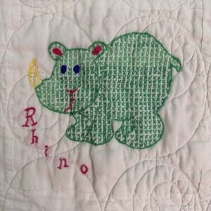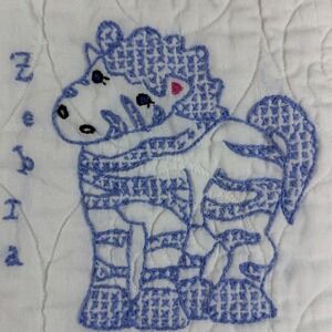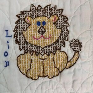 Childrens Zoo Embroidered Quilt Blanket Handmade Baby Toddler Animal Theme