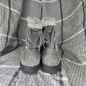Bass Shannon Tie Back Short Black Leather Boots Sz 7