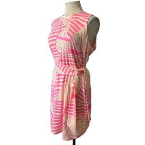 Julie Brown Dress Pink Ivory L Large Stretch Sheath W Belt Washable Sleeveless
