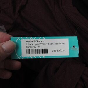 Hang tag description: "2 Pack Elaine Pocket Short Sleeve Tee Burgundy - M." Hang tag numeric code: 356555214.