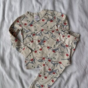 Charming cream pajamas with red and gray mountain design. Soft and snug for bedtime comfort. NWOT