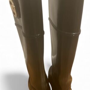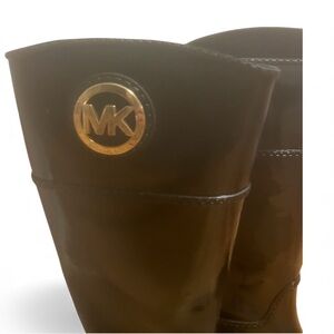 Elegant glossy boots with signature MK emblem. Perfect for rainy days.