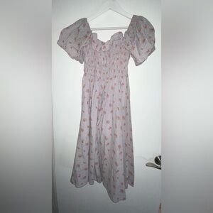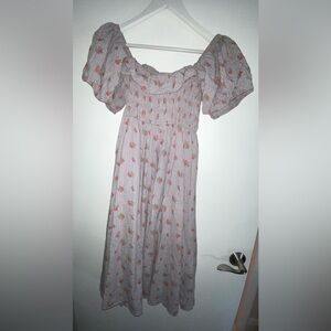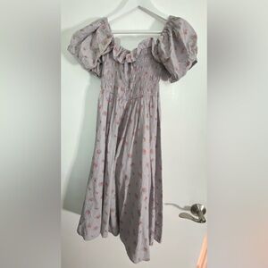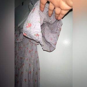 Size M (US 8-10). Very good Preowned condition. Floral print. Comes from a pet free, smoke free home. Please see photos. Romantic Cottagecore. Color is a grayish purple-y blue.