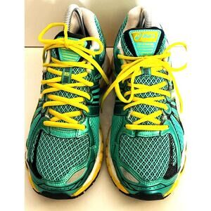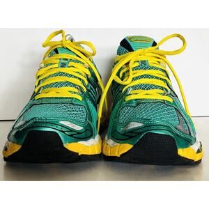 Asics Sz 8 1/2 Gel Nimbus 15 Running Sports Shoes Teal & Yellow. Excellent condition