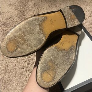 Gucci Black Leather Mules with Gold Accents