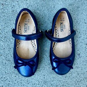 M&S Blue Ballet Flats Girls US 8.5 EU 25.5 Mary Jane Toddler Girl Shoes Bows