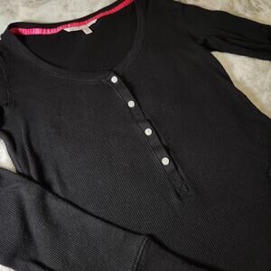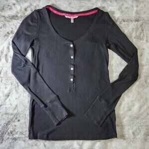 Victoria's Secret Black Soft and Stretchy Henley Long Sleeve Sleep Shirt - S