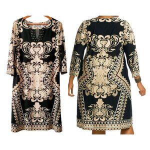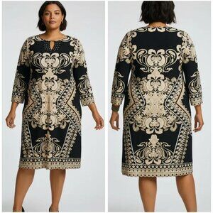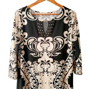 Maria Gabrielle Women's Plus Size Keyhole Neck Printed Tunic Short Dress Size 1X