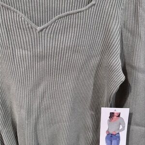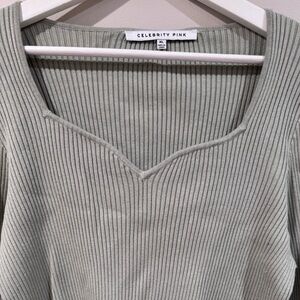Chic ribbed crop top with a square neckline. Long sleeves for a cozy fit.