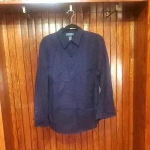LAUREN SIZE 1X Women's Deep Blue Casual Shirt