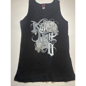 Kat von D Ribbed Black Tank Top Women’s Size Large Logo Front Stretch