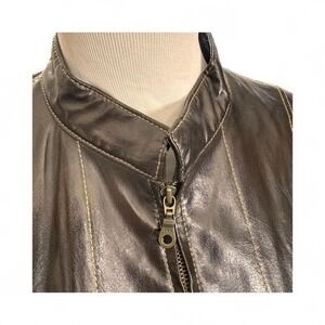 Keywords: moto jacket, leather jacket, brown leather, contrast stitching, biker jacket, women's outerwear, genuine leather, fall fashion, winter wear, stylish, classic, designer, premium leather