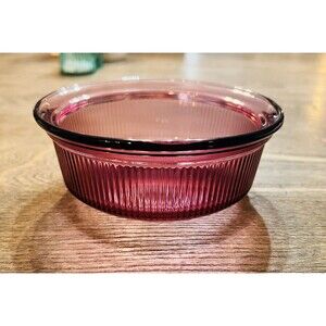 This vintage Cranberry CorningWare bowl is perfect for baking and serving your