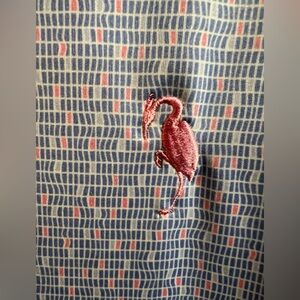 This light blue and pink short sleeve polo also has an embroidered flamingo on the front. No snags and amazing condition. Vibrant in color.