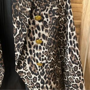 Daring leopard print blazer with opulent crest buttons. Notched lapel Long sleeves , Double breasted blazer, Waist flap pockets ,