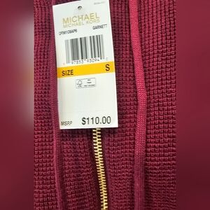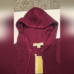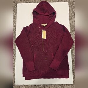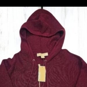 NWT Michael Kors Women's Maroon Knit Hoodie With Half Zipper And Strings--Size S