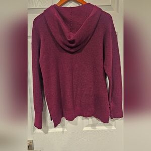 Beautiful stylish deep maroon knit hoodie. Features gold front zipper and drawstrings. Ideal for layering and warmth. NWT.