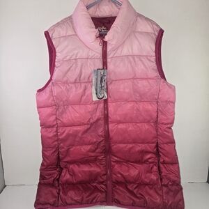 Elevate your wardrobe with this chic pink ombre puffer vest. Ideal for layering and adding a pop of color to your outfit.