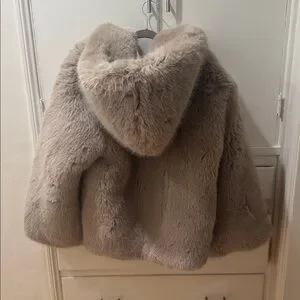 Preowned Alo Yoga Opulent Faux Fur Statement Jacket size m/l in oat. Worn once for an event. In perfect condition.