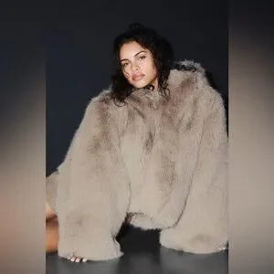 Live your best snow bunny life in the Opulent Statement jacket, made from the softest, fluffiest faux fur you’ve ever felt. It has an oversized hood that slouches perfectly over the shoulders, wide bell sleeves and a hip-length hem. The relaxed fit elegantly hovers around the body, and hook-and-eye closures keep it buttoned up in the front. Wear it for cold weather—or just to look cool.