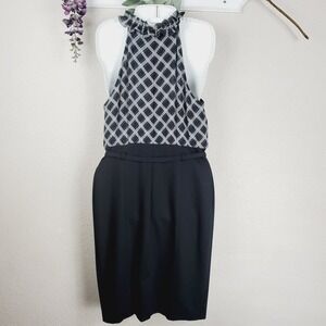INC Silk Ruffled Halter Neckline Belted Mini Pencil Black Women Dress Size 10