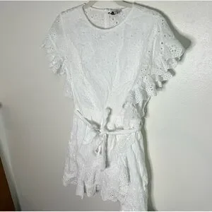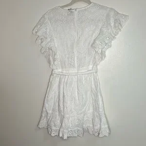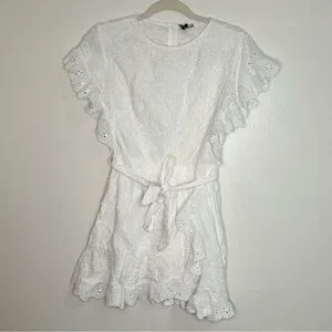 Princess Polly white Ruffle sleeve belt eyelet dress