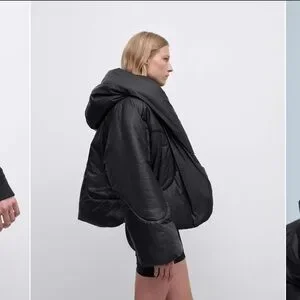 Sleek black puffer jacket. Hooded design for extra warmth. Perfect for cold weather.