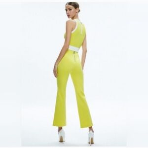 The ALICE + OLIVIA RMP Mid Rise Back-Zip Bootcut Ankle Pant in size 2 is a stylish women's pant featuring a flattering bootcut leg style and ankle length. The yellow color adds a pop of color to any outfit, while the zip closure makes them easy to slip on and off. With the reputable Alice + Olivia brand behind them, these pants are sure to be a versatile and fashionable addition to any wardrobe.