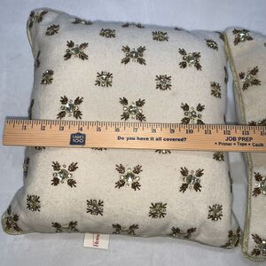 Real lambs wool diamante encrusted accent pillows cream gold 14 x 12 inches