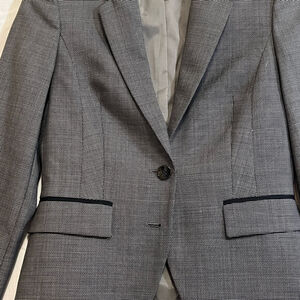 Hugo Boss women’s blazer in amazing condition (aside from the 2nd button missing (easy replace). Very cute little blazer in a size small in petite (0P according to the tag) Please open the pictures to see them clearly.