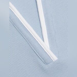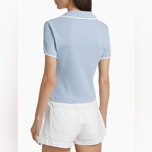 Chic sky blue polo with open collar. Perfect for casual elegance.