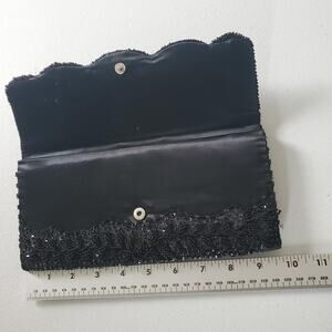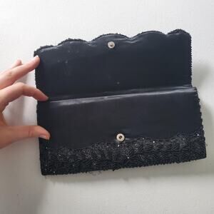 Item: Vintage black beaded evening clutch purse, ideal for formal events or special occasions.