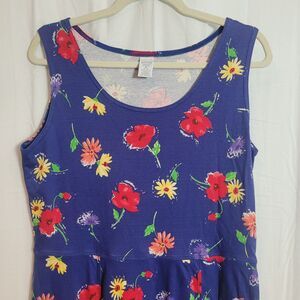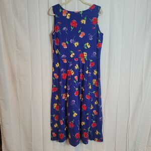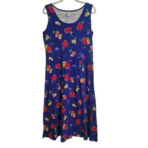 Land's End Floral Cotton Midi Dress Women's Size Large 10-12 Blue Casual Picnic