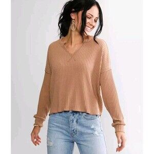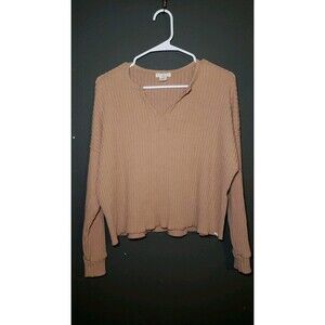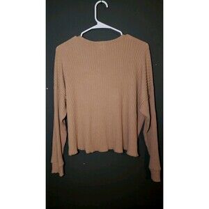 Billabong Essentials 'So Easy' Ribbed Top Size Medium Light Brown Long Sleeve