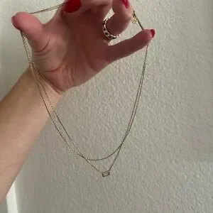 Elegant double-layer necklace. Features a minimalist bar pendant. Perfect for any occasion.